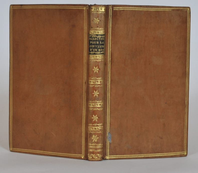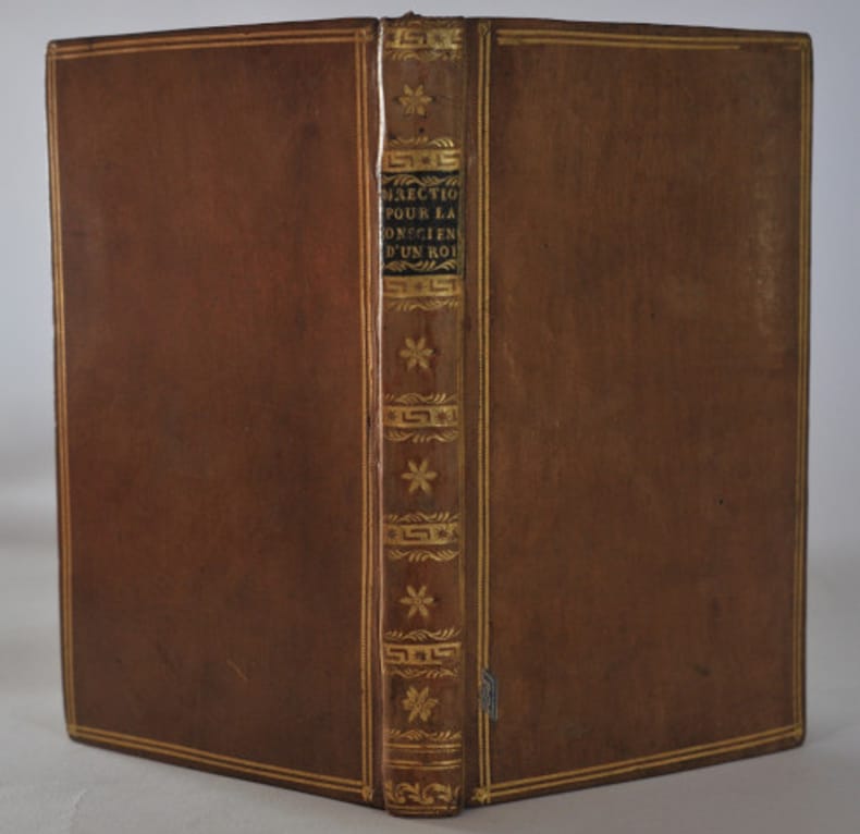 Nouvelle édition. Introduites en France clandestinement après une publication en Hollande, les Directions pour la conscience d'un roi firent très bonne impression sur le jeune Louis XVI qui « ayant par hasard eu connaissance de ce livre, fut extrêmement satisfait de sa lecture et chargea l'abbé Soldini, son confesseur, de le faire réimprimer, lui disant : "Comme je suis résolu de remplir tous mes devoirs, je n'ai pas d'intérêt à en faire un mystère au public : il serait fâcheux d'ailleurs pour mes successeurs, qu'un aussi bon livre vint à se perdre" » (Renouard). Coins frottés, accroc en queue sinon bon exemplaire.