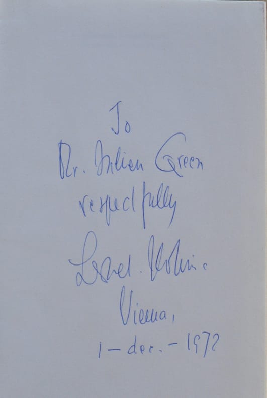 [Vienne], Eduard Kaiser Verlag, [Vienne], Eduard Kaiser Verlag1963 ; in-8, cartonnage d’éditeur illustré. 172 pp.Ce roman de l’écrivain autrichien A. Lernet-Holenia (Vienne 1897 - 1976) a été offert par l’auteur à Julien Green à Vienne le 1er décembre 1972. ENVOI AUTOGRAPHE To Mr. Julien Green respectfully. De confession protestante, Lernet-Holenia s’était converti au catholicisme en 1923, comme J. Green l’avait fait en 1916. L’Église catholique ayant refusé l’inhumation de J. Green dans l’église d’Andrésy, il sera enterré en 1998 à Klagenfurt en Autriche.