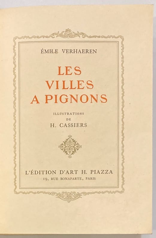 Les villes a Pignons 40 illustrations colorées du H.Cassiers ex 751 / 1000, exemplaires sur vélin des manufactures blanchet frères et Kléber 185 x 115 mm, soft cover, avec farde de protection abumée, 170 pg, non ronn rognées, en bon etat