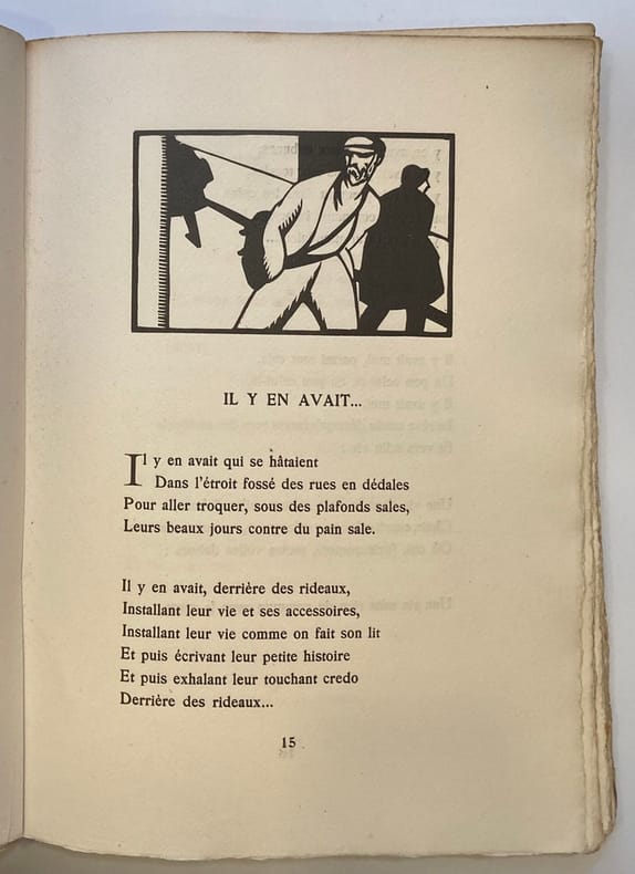 Illustré de bois de Picard le Doux. 1 des 240 exemplaires numérotés sur Vergé à la cuve d'Arches. Envoi autographe signé de l'auteur à Paul et Louise Cilma.