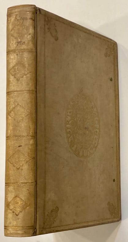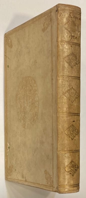 1720 Leyde. Samuel Luchtmans. 1720. 1 volume in-8, vélin orné de filets et fleurons dorés, aux armes dorées de la ville de Haarlem, avec la devise Vicit Vim Virtus (la vertu vaincra la violence). , dos lisse orné, traces de lacets sur les plats. (32) ff. ; 215 pp. ; (29) ff.