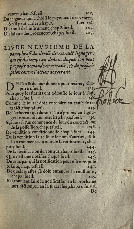 Édition revue, corrigée et augmentée pour la troisième impression, après celles de 1564 et 1567. Discussion du droit féodal de retrait lignager, tendant à retenir la possession des biens fonciers dans les mêmes familles, en donnant à tout parent d'un vendeur le droit de récupérer un bien vendu à l'extérieur de la famille. Cette étude est constituée de 9 parties; l'auteur publiera en 1572 De la prescription contre mineurs et ignorans, en matière de Retraict lignager, qui sert de livre dixième.François Grimaudet (1520 – 1580), jurisconsulte et député angevin, devint avocat du Roi et du duc d'Anjou en 1558, ainsi que maître des requêtes.Signature à l'encre en marge du f. [19] (Lohrer?), et 2 sur la page de titre (Le Cardonnel), dont une biffée. Galeries de vers et petite mouillure marginale. Exemplaire issu de la bibliothèque du angevin Ex-libris Guillaume Bodinier (1795-1872), peintre angevin.