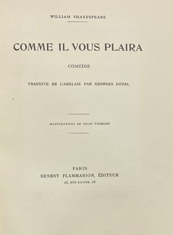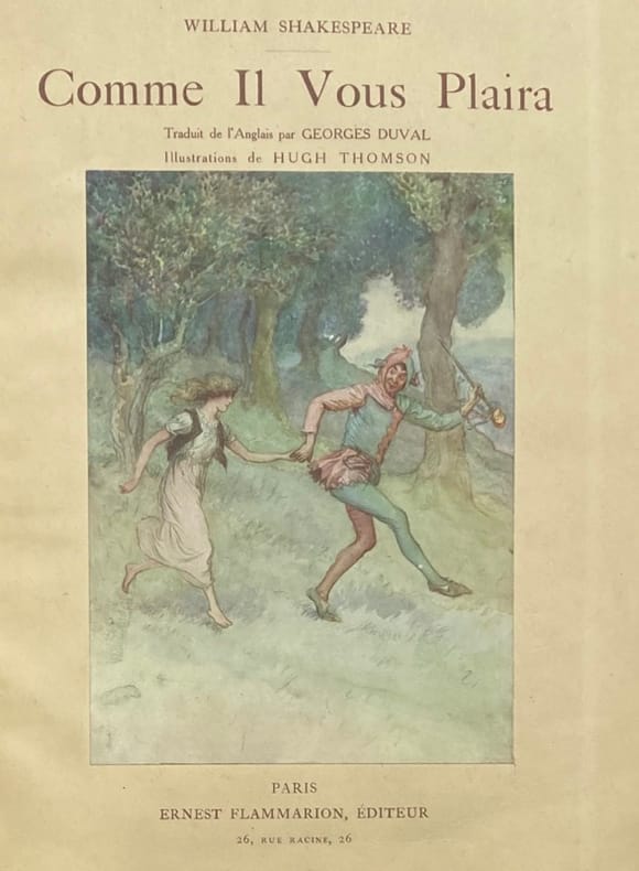 Paris, Flammarion, sans date (début XXème). In-4, demi chagrin à coins éditeur signé Flammarion et Vaillant, dos lisse orné de filets, de fleurons et d'une tête de bouffon dorés, titre doré, filets dorés sur les plats, tranche supérieure dorée, VII, 152 pp. Ouvrage illustré d'un frontispice et de 39 illustrations hors texte en couleurs, contrecollées par Hugh Thomson. Couvertures conservées (plat supérieur illustré). Coins émoussés, mors, coupes et coiffes frottés, nombreuses rousseurs.