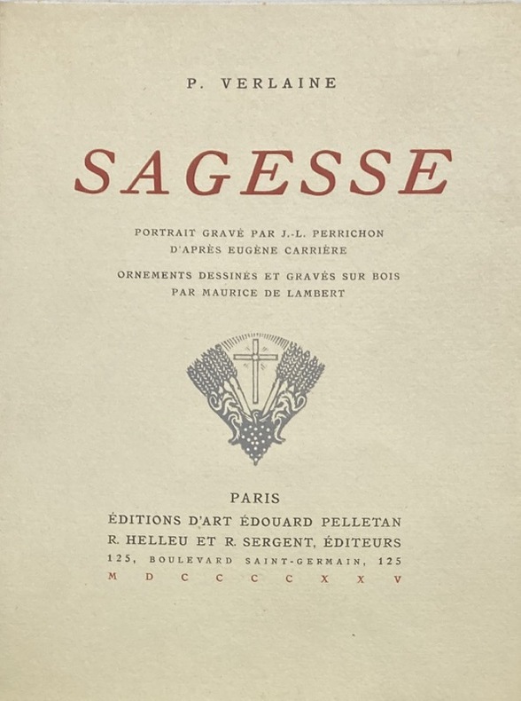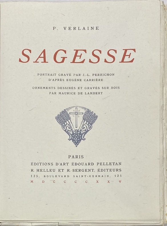 Édition illustrée d'un frontispice de J.-L. Perrichon, d'après Eugène Carrière et de bois originaux, dont 3 planches à pleine page en noir et bleu, et 4 en-têtes dessinés et gravés par Maurice de Lambert. 1 des 25 exemplaires numérotés sur Chine, second papier.Quelques rousseurs.