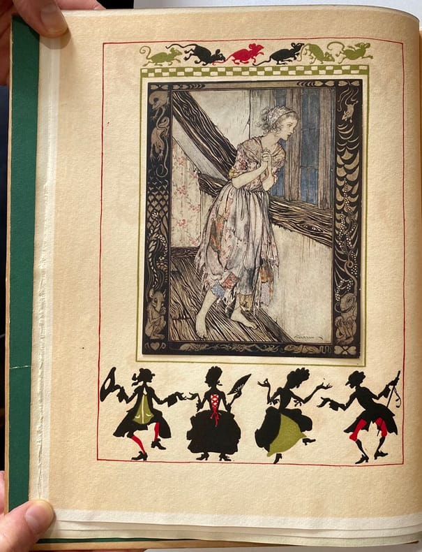 Illustré par Arthur Rackham d'un frontispice en couleurs contrecollé, de 4 compositions en couleurs, dont 3 sur double page et de nombreuses compositions en noir.1 des 500 exemplaires numérotés sur papier à la forme, signé par l’artiste.Quelques décharges. Cartonnage sali avec infimes frottements.