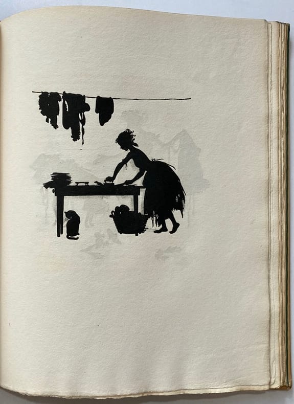 La première représentation connue de Cendrillon. Rarissime, elle parait ici en 1514 dans cette édition originale donnée par Grüninger à Strasbourg. Cendrillon en 1514. Geiler Von Kaisersberg, Johann (1445-1510). Das Jrrig Schafe Sagt vo(n) cleinmütikeit un(d) böser anfechtung. Strasbourg, Johann Grüninger, 1514. Relié avec: - Das Ostertag (Ibidem, 1520). Deux ouvrages en 1 volume petit in-folio de 92 et 60 feuillets, plein vélin ivoire. 278 x 192 mm. Première édition donnée par Grüninger, d’une grande rareté, du Das Jrrig Schaf, œuvre du philosophe et théologien de Fribourg, ami de Sebastian Brant, auteur de sermons intrépides contre la sécularisation et la démoralisation du clergé. Les sept sermons sont illustrés chacun d’un bois, dont le célèbre « eschengrüdel », qui est la première représentation connue de cendrillon. Réunion de deux éditions remarquablement illustrées par des artistes travaillant pour Jean Grüninger, le plus important des imprimeurs strasbourgeois jusqu'en 1520. Paul Kristeller, Die Strassburger Bücher-Illustration im XV. und im Anfange des XVI Jahrhundert, Nieuwkoop, 1966 (fac-similé de l’édition de 1881), 146, 179 et 183 ; Richard Muther, German book illustration of the Gothic period and the early Renaissance, 1460-1530, trad. Ralph R. Shaw, Metuchen, 1972, 1434, 1454 et p. 199-200. L’Occident connaît surtout l’histoire de Cendrillon à travers les versions fixées par Giambattista Basile dans La Gatta Cenerentola, Charles Perrault dans Cendrillon ou la Petite pantoufle de verre et par les frères Grimm dans Aschenputtel. Mathilde de Morimont (Mechthild von Mörsberg) qui vécut entre le XIe et XIIe siècle (décès le 12mars 1152) est la personne qui aurait inspiré la "légende de la petite Mathilda". La légende, de près de 500 ans plus ancienne que le fameux conte de Charles Perrault est troublante de similitude. Le château où Mathilde a grandi est aujourd'hui en ruine mais visitable. Le château du Morimont (Burg Mörsberg) se trouve sur la commune d'Oberlarg (Haut-Rhin) sur une colline à 522 m d'altitude à proximité de la frontière Suisse. L'histoire : Une jeune orpheline, gardeuse d'oies, qui reçoit de sa marraine une pomme (et non une citrouille) susceptible d'exaucer trois vœux. Grâce à ce fruit magique, Mathilde acquiert une robe magnifique et se rend par deux fois au bal organisé par un chevalier aussi beau que riche. Problème : à minuit, la belle redevient invisible. Le chevalier, au désespoir, fait rechercher celle qui a conquis son cœur, parvient à la retrouver grâce à une bague (et non un soulier de verre) qu'il lui avait offerte et finit par l'épouser. En Europe encore, Giambattista Basile a recueilli les histoires de la tradition orale, dans son recueil de contes, Le conte des contes ou Le divertissement des petits enfants. Le conte de La Gatta Cenerentola (La Chatte des cendres), publié dans le Pentamerone, I, 6, présente Zezolla, fille d'un prince. Le récit, que Perrault a pu lire et épurer, y est plus brutal et détaillé. La baronne d'Aulnoy publie en 1698 dans le recueil Contes nouveaux ou Les Fées à la mode, Finette Cendron, version du conte dans laquelle le merveilleux joue une part très différente. La première étude approfondie des nombreuses variantes du conte de Cendrillon est due à l'Anglaise Marian Roalfe Cox, qui, aidée de plusieurs spécialistes de divers pays, en a recensé 345 (parmi lesquelles un conte de Bonaventure des Périers, la version de Basile et celle de Perrault) dans son ouvrage intitulé Cinderella (1893). Cette œuvre considérable a ensuite connu un certain oubli, et ce n'est qu'en 1951 qu'une nouvelle étude, due à la Suédoise Anna Birgitta Rooth, The Cinderella Cycle, qui présente près de deux fois plus de variantes que celle de Cox, l'a en partie supplantée ; Anna Rooth rend hommage à sa devancière dans son Introduction.