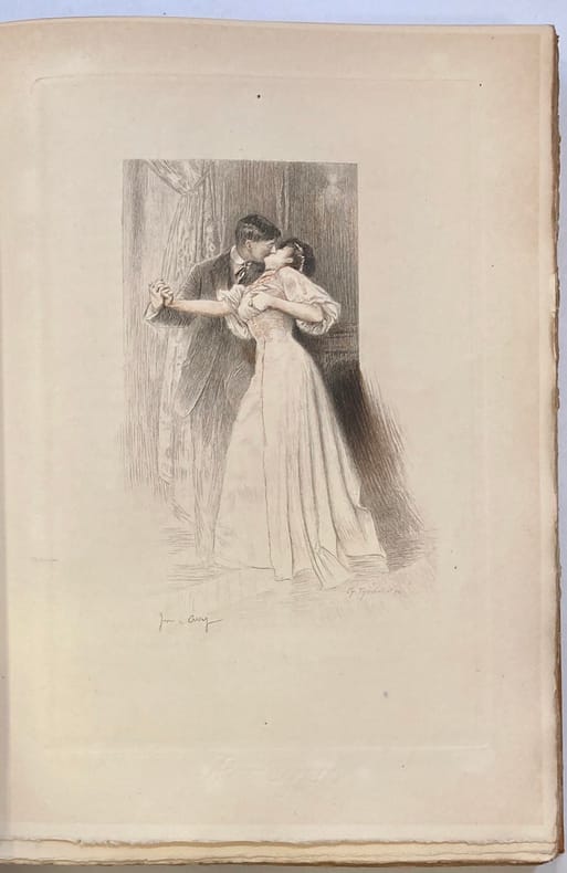 1 vol. grand in-8 reliure de l'époque demi-basane à coins bleue, dos à 5 nerfs, Modern-Bibliothèque, Arthème Fayard, Paris, s.d. [ circa 1910-1920 ], Contient : Mademoiselle Jaufre. Illustrations d'après les aquarelles de Laurent-Desrousseaux - Les Demi-Vierges. Illustrations d'après les aquarelles de H. Morin - Le mariage de Julienne. Le moulin de Nazareth. Nimba. Illustrations d'après les aquarelles de Macchiati - La Confession d'un Amant. Avec une lettre de M. Alexandre Dumas fils. Illustrations d'après les aquarelles de G. Conrad