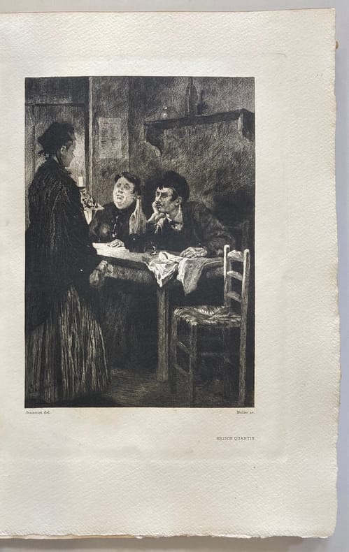Dix compositions par Jeanniot, gravées à l'eau-forte par L. Muller, 1 vol. grand in-8 reliure postérieure demi-chagrin bordeaux, couvertures conservées, Collection des Chefs-d'oeuvre du Roman contemporain, Maison Quantin, Paris, 1886, xix-294 pp. et 1 f. n. ch. avec 10 planches hors texte