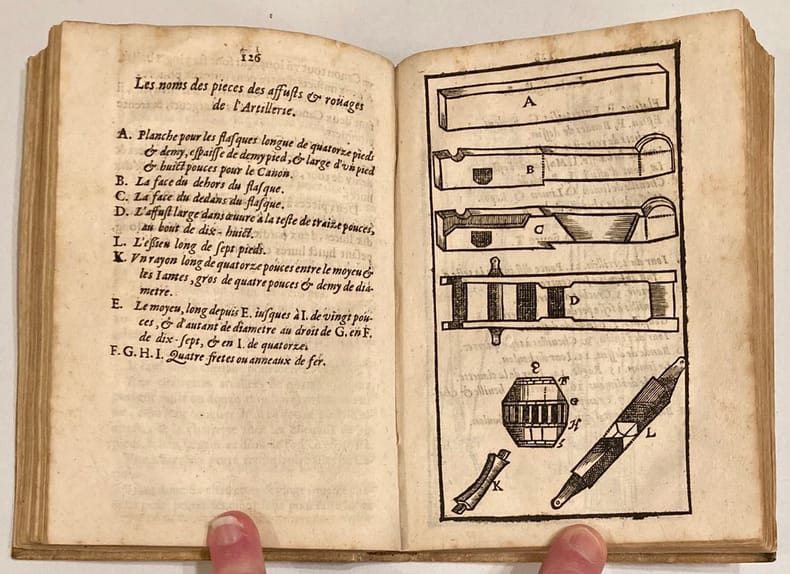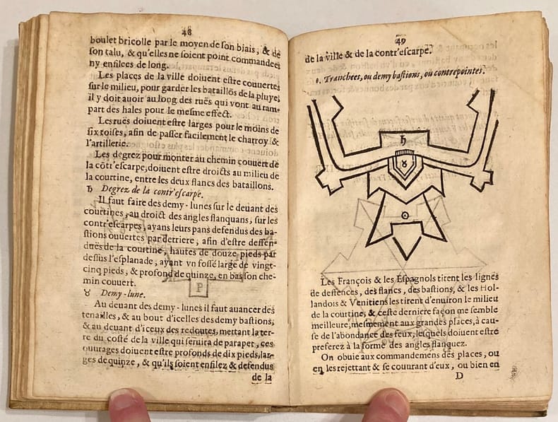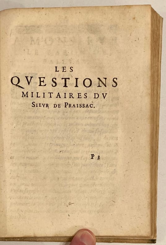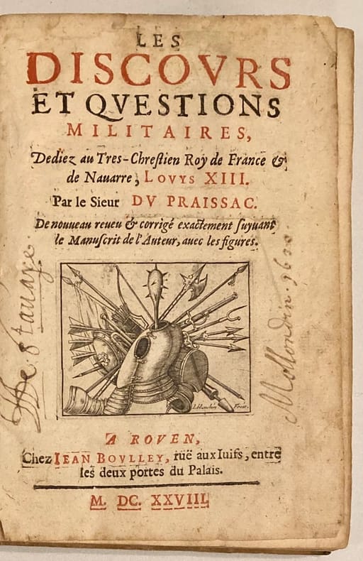 De nouveau revu et corrigé exactement suivant le manuscrit de l’auteur, avec les figures.Edition illustrée de nombreuses figures in-texte dont plusieurs à pleine page, et d’une vignette de titre.La seconde partie est intitulée : Les questions militaires du Sieur de Praissac. Ex-libris manuscrit sur la page de titre.