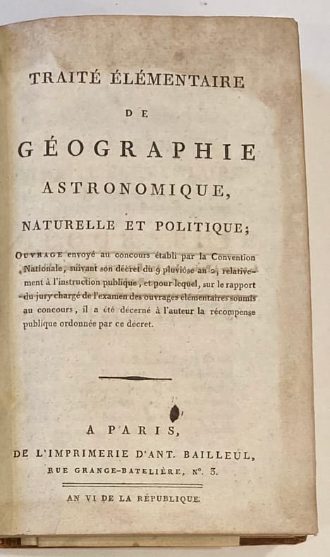 1797 Paris. A. Bailleul. An VI. (1797-1798). 1 volume in-8, pleine basane mouchetée, dos à nerfs orné, pièces de titre havane. (2) ff. ; 552 pp. ; 3 planches dépliantes.
