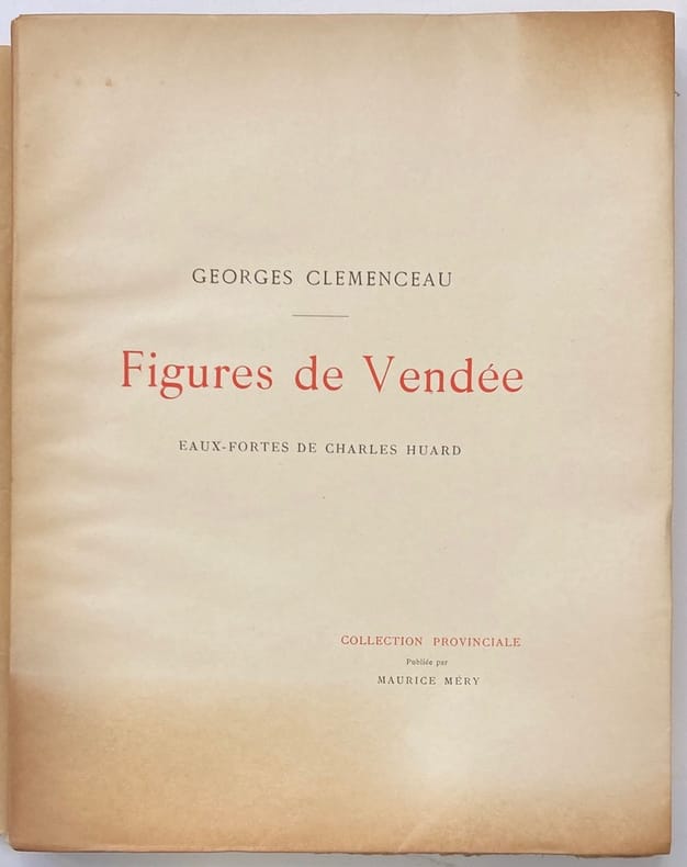 Edition originale collective. Quelques uns des récits réunis dans ce volume ont paru en 1903 sous le titre de Figures de Vendée sous forme de plaquette dans un tirage limité. Les autres furent publiés de manière dispersée dans plusieurs volumes.....superbe reliure.....non signée mais elle le mériterait...en bon état (good condition).