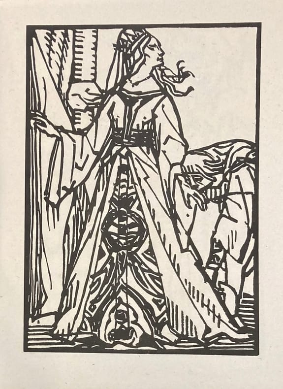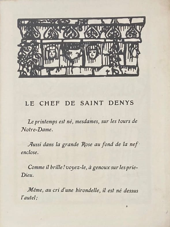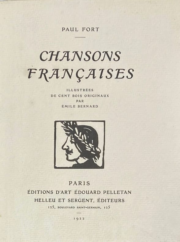 Edition illustrée de 100 bois originaux d’Emile Bernard.1 des 22 exemplaires de tête numérotés sur Japon accompagné d’1 suite complète des bois sur Chine. Etui légèrement sali avec dos insolé.Emile Bernard épousera Andrée Fort, soeur de Paul Fort.