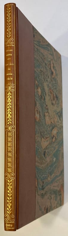 1889 Paris. P. Rouquette. 1889. 1 volume in-8, demi-veau havane à la Bradel, dos lisse orné légèrement passé, tête dorée, non rogné, couvertures illustrées conservées. Reliure signée Petitot. VII pp. ; (1) p.bl. ; 38 pp. ; (1) f. ;