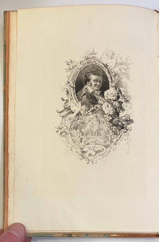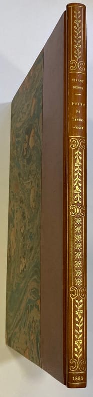 Charmante illustration de Paul Avril. Elle se compose d’un portrait de l’auteur en frontispice et de 13 vignettes gravées à l’eau-forte dans le texte, ainsi qu’une grande composition sur la couverture. Tirage à 505 exemplaires numérotés. Exemplaire hors justification sur Japon, offert par l’éditeur à son ami Regnault. Cet exemplaire est justifié d’une étoile par l’éditeur, accompagnée d’un envoi au crayon "souvenir de bonne amitiéà mon ami Regnault". Il est enrichi de 4 états supplémentaires du portrait et de 3 suites des illustrations: les eaux-fortes pures et 2 états avant la lettre, dont un tiré en couleur (bistre ou bleuté). On a relié à la suite un spécimen de 4 pages imprimé sur Hollande et la plaquette d’Anatole France sur Vivant-Denon, ici un des quelques exemplaires imprimés sur Japon. Il s’agit d’un tirage à part d’un article paru dans Le Temps, non mis dans le commerce et réservé aux souscripteurs de Point de lendemain. Un des plus délicieux textes de la littérature érotique du XVIIIe siècle. Publié pour la première fois anonymement en 1777 dans les Mélanges littéraires dirigés par Dorat, ce récit libertin conte l’expérience initiatique d’un jeune homme qui sera le jouet d’une femme dominante. L’auteur de cette piquante aventure, Dominique Vivant-Denon (1747-1825), fut aussi diplomate, dessinateur, graveur, archéologue; il participa aux côtés de Bonaparte à l’expédition d’Égypte, dont il publia la célèbre Description, et fut directeur du Louvre. Bel exemplaire en reliure de Marcellin Lortic. Vicaire, III, 181-182.