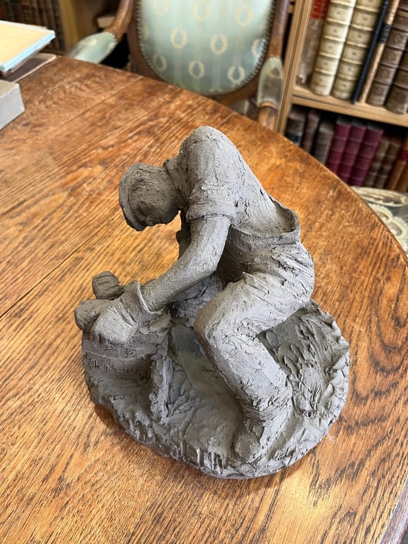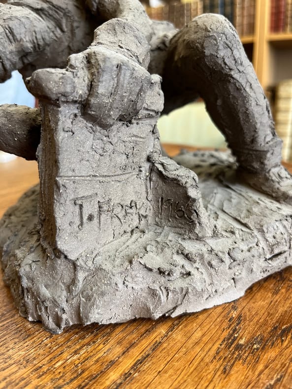 1960 1960. Sculpture en argile grise. 19 x 17 x 16cm