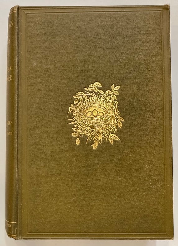 1875 London, George Bell and Sons, 1875 ; 3 volumes in-4, pleine toile verte de l'éditeur illustrée d'un encadrement géométrique à froid et du décor doré d'un nid avec des oeufs orné d'une guirlande floral au 1er plat, décor, titre et tomaison dorés au dos; VIII, 164, 10pp.; IV, 164, 8pp.; IV, 171, 8pp.