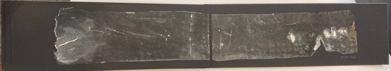 Gouache originale jouant avec les aspérités du support, réalisée sur 2 fragments de papier contrecollés sur 2 pages de papier fort noir, signée et datée par l’artiste.