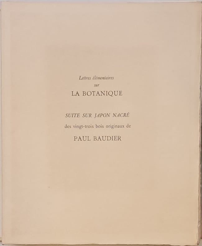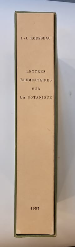Charmant recueil de 44 planches de botanique gravées par J. Aubry et aquarellées à la main, avec pour chacune, un feuillet d'explication. Cet ouvrage a pour but d'accompagner les Lettres sur la botanique auxquelles sont dédiées 38 planches, et le Dictionnaire des termes de botanique de Jean-Jacques Rousseau dans l'édition de ses Oeuvres par Louis-Sébastien Mercier pour les 6 restantes. Rousseau en toutes lettres, p. 381. Voir photographie(s) / See picture(s) * Membre du SLAM et de la LILA / ILAB Member. La librairie est ouverte du lundi au vendredi de 14h à 19h. Merci de nous prévenir avant de passer,certains de nos livres étant entreposés dans une réserve.