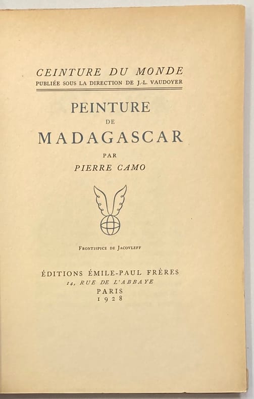 Illustré d'un beau frontispice d'Alexandre IACOVLEFF représentant un couple, ce texte est une hymne à la beauté Madagascar. Couverture légèrement insolée, petites usures aux coins et au dos, pages légèrement jaunies, petites piqûres.