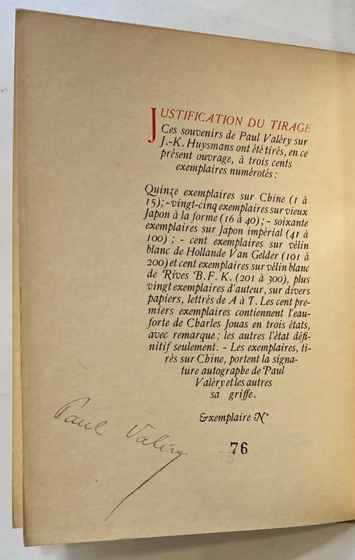 Edition originale. 1 des 60 exemplaires numérotés sur Japon impérial, signature au tampon de l’auteur.Portrait-frontispice de Huysmans, gravé à l'eau-forte par Charles Jouas en 3 états.