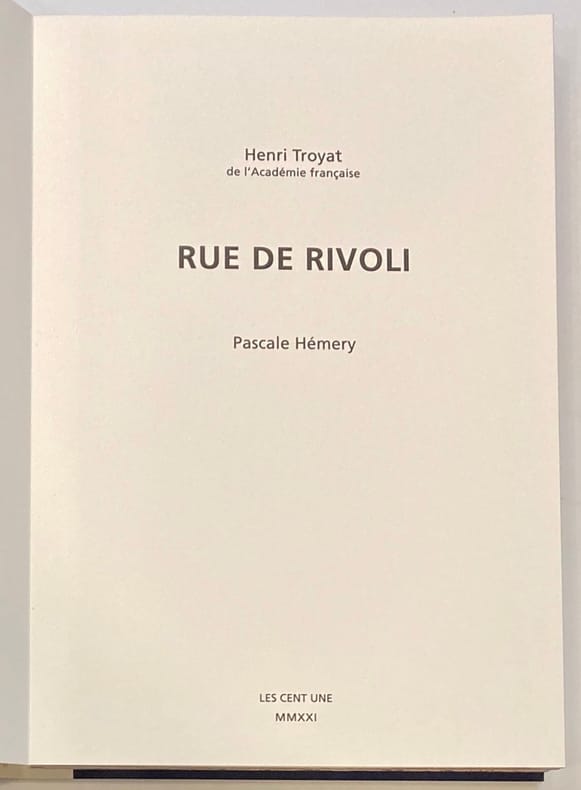 Très représentative du paysage parisien, la rue de Rivoli a été une création urbanistique importante. C'est toute l'évolution d'un modèle expérimental qui est ainsi retracée. (…) La rue de Rivoli a inspiré de façon féconde Bayonne, Chambéry, Corfou, Hambourg, Salonique ou Turin. Après une histoire des portiques et des nouvelles rues de l'Ancien Régime et de l'époque révolutionnaire, sont évoquées les rues des Colonnes et de Rivoli, leur avenir, leurs arcades.