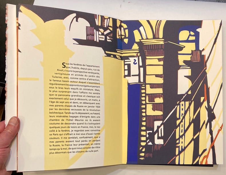 Edition illustrée de linogravures originales en couleurs de Pascale Hémery. Tirage à 125 exemplaires. Celui-ci est 1 des 101 exemplaires numérotés pour les Sociétaires, celui-ci n° LXXVI, spécialement imprimé par Janine Missakian. Tous les exemplaires sont signés au crayon par l'artiste et la Présidente. 50ème ouvrage édité par les Cent Une.