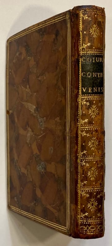 Ouvrage historique considéré comme une oeuvre majeure même si controversée, de l’auteur et historien Saint-Réal (1643-1692). Cité par Voltaire dans Le siècle de Louis XIV qui en fait l’éloge, il est à l’avant-garde des romans historiques modernes.Mouillure sur le dernier feuillet et les dernières gardes. Reliure légèrement frottée, 1mors fendu.Ex-libris Michel Hudelot.