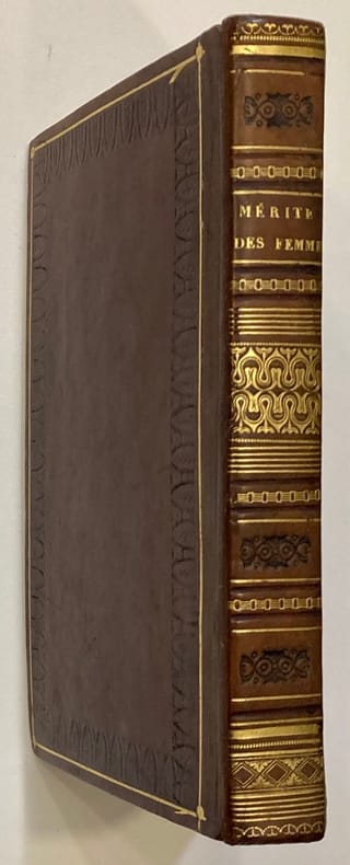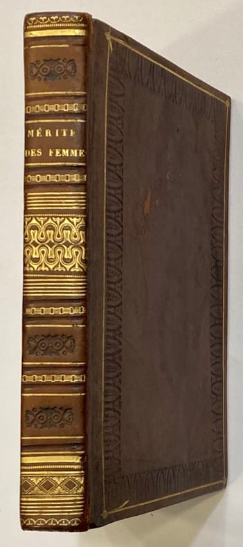 Chez F. Louis "Paris, 1825, petit in-12 demi-basane rouge, dos à quatre nerfs, fleurons dorés, pièce de titre verte (reliure vers 1900) Frontispice-page de titre gravée-XII-214pp.-1f. Le Mérite des femmes travesti occupe les cinquantes premières pages et les notes, les cent dix suivante ! Le traté du Burlesque occupe les quarante dernières pages. Mouillure claire en pied du titre et du frontispice et dans la marge intérieur. Le reste de l'ouvrage est en parfait état sans la moindre rousseur. L'ouvrage parodie le célèbre ""Mérite des femmes"" de Gabriel Legouvé publié pour la première fois en 1801. Edition originale"
