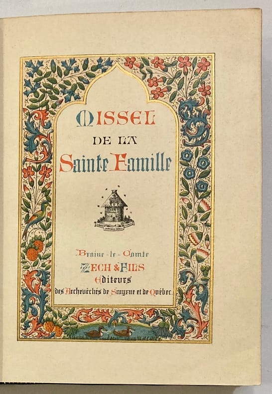 "Depelley J. & Cie. 1932. In-8. Relié. Bon état, Couv. convenable, Dos satisfaisant, Intérieur frais. 320 pages augmntées de nombreuses gravures en noir et blanc dans et hors texte. Titre doré sur pièce de titre. Décors dorés sur premier plat Contreplat et garde marbrés. Tranches dorées. Tranches fines en couleurs sur coiffes. 1 signet conservé. Frontispice en noir et blanc de""La sainte famille"".. . . . Classification Dewey : 264-Le culte"