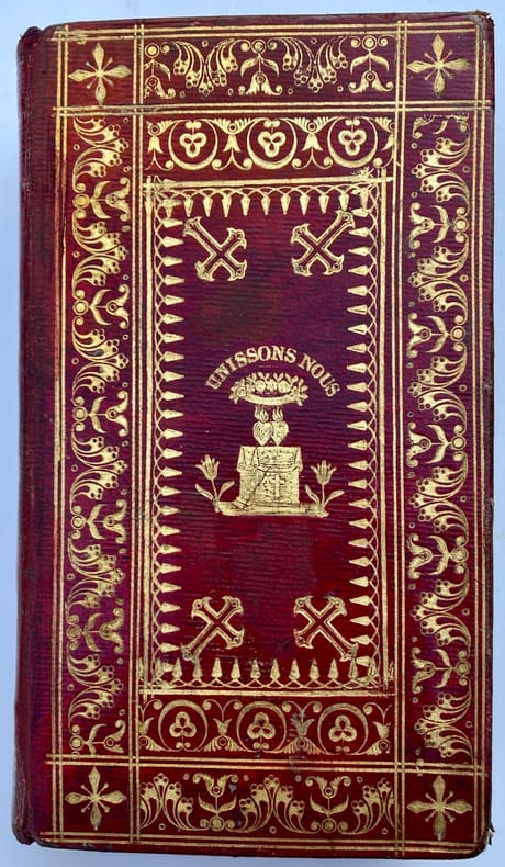 1830 Paris.Théodore Le Clerc. (vers 1830). 1 volume in-12, plein maroquin rouge, reliure parlante « Unissons-nous », encadrement richement orné de motifs dorés, dos lisse orné, tranches dorées. (6) ff. ; 688 pp.