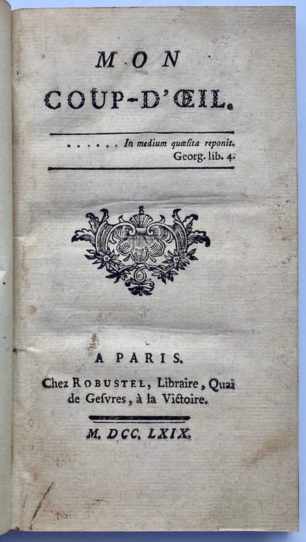 1769 Paris. Robustel. 1769. 1 volume in-12, plein veau brun glacé XIXème, 5 filets dorés en encadrement sur les plats, dos à nerfs orné, nom de l'auteur et date en queue. (1) f. ; VIII pp. ; (1) f. ; CCXLIII pp. ; (1) p. ; bl.