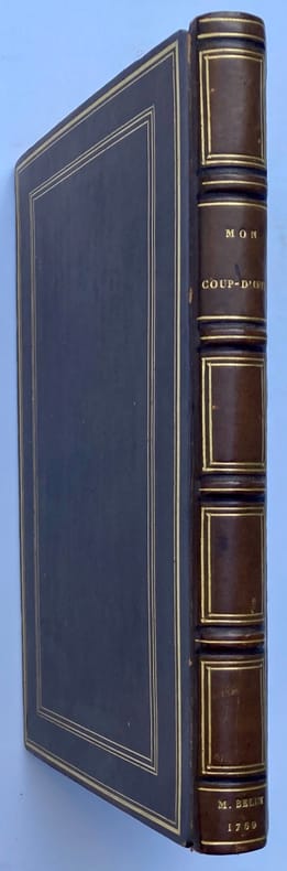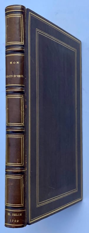 Amusant recueil plein de sagesse d’environ 500 traits d’esprit accompagnés d’une table reprenant les différents thèmes traités par l’auteur, et finissant par un court essais sur l’imagination:« La flatterie est une espèce de glu qui ne prend que celui qui s’y attache avec plaisir ».« Le vrai secret pour avoir toujours raison, c’est d’être persuadé que l’on peut très souvent avoir tort »…Ex-libris « Bibliothèque de Mr Belin, censeur des études au Collège Royal de Charlemagne ». Infimes rousseurs. Barbier III, 330.
