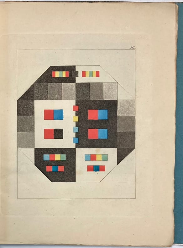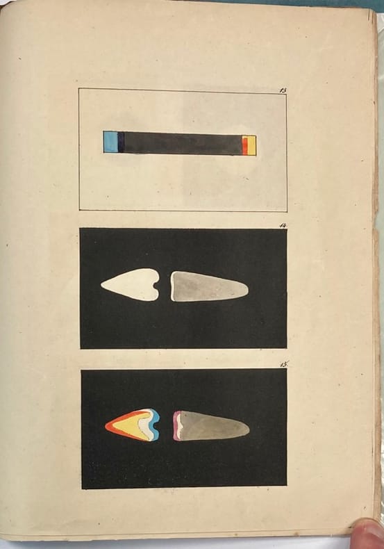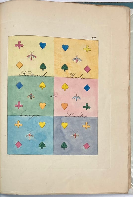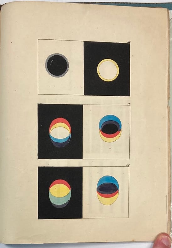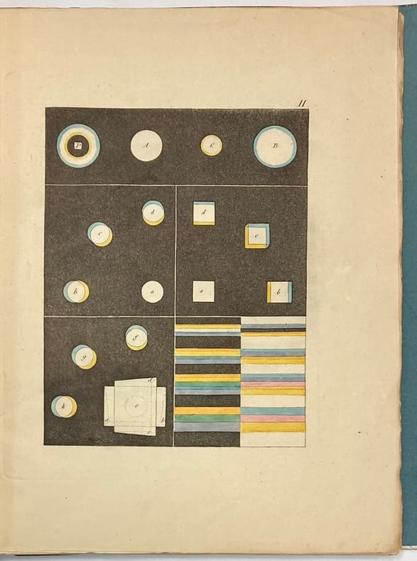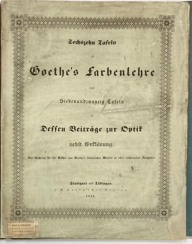 Seconde édition illustrée de 17 planches hors-texte, dont 12 coloriées, et à la suite d'un feuillet de titre séparé, 9 autres planches hors-texte, dont 6 coloriées. Cet ouvrage était d'abord paru en 1810 dans les Oeuvres de Goethe; et parait ici séparément pour la 1ère fois.