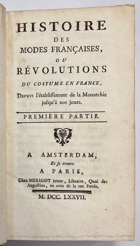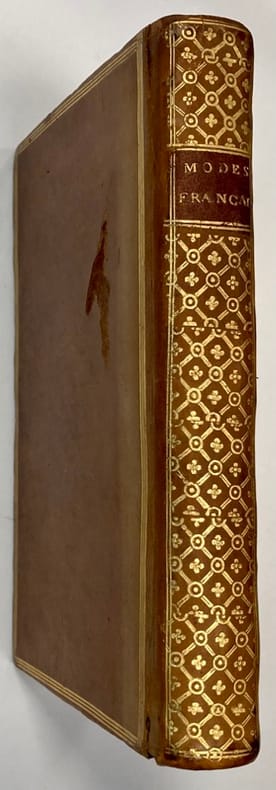 Amsterdam et se trouve à Paris chez Costard, 1773. In-12, demi basane fin XVIIIe, dos à nerfs orné de filets dorés, titre doré. Faux-titre, titre, XXIV, 360 pp, 1 p non chiffrée. Bien complet du supplément contenant "Les Recherches sur les Chevelures artificielles". Coins émoussés, coiffe supérieure manquante, manques à la coiffe inférieure, cuir frotté, fente au mors supérieur, coupes usées, mouillure en tout début de volume.
