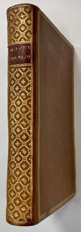 Amsterdam, Paris, Costard, 1773. In-12, (1) f. titre, xxiv, 362 pp. mal chiffrées 360, (1) f., bradel cartonnage de papier brun marbré, plat supérieur en veau ancien rapporté, portant le nom Le Touzé en lettres dorées, dos lisse avec pièce de titre rouge d’origine, doublures et gardes anciennes rapportées, tranches rouges (cartonnage moderne de Thomas Boichot).Colas, n° 1449. - Lipperheide, n° 1674. - Vinet, n° 2239.Édition originale de cette histoire des perruques masculines et de la barbe, contenant 6 parties : Des Cheveux des français. - De la Barbe des Français. - Recherches sur les Chevelures artificielles des Anciens. - Histoire des Perruques. - 20 Pièces justificatives. - Observation importante sur l’Abrégé Chronologique de l’Histoire de France, par M. Hénaut.Ex-libris ancien Claude Fachot (1754-1814), bibliothécaire à Nancy ; ex-libris gravé héraldique d’Octave Grandjean d’Alteville (1820-1861), bibliophile lorrain qui possédait notamment une riche collection d’ouvrages sur la vénerie.