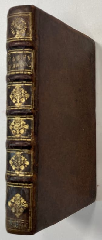 1696 Amsterdam. Paul Marret. 1696. 1 volume petit in-12, plein veau brun, dos à nerfs orné, restauration aux coiffes. frontispice, (24) ff. ; 170 pp. ; (9) ff.