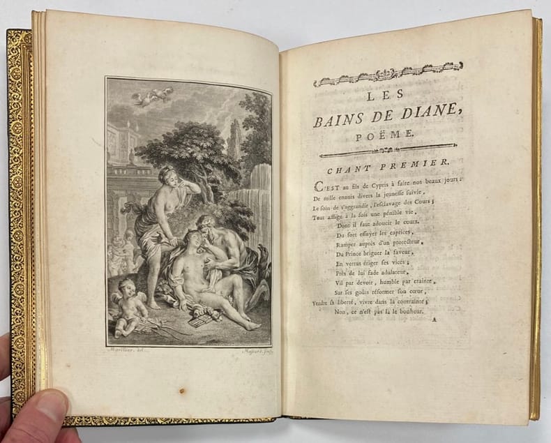 Edition originale et premier tirage des gravures d'après les jolis dessins de Marillier. Cohen, 295.