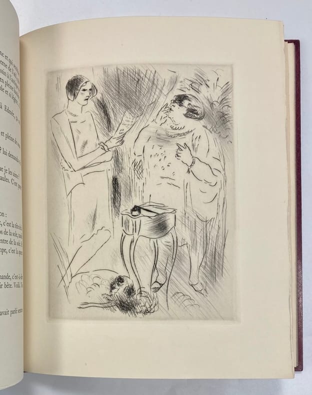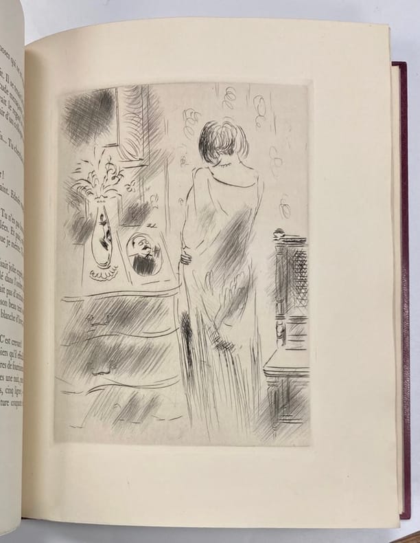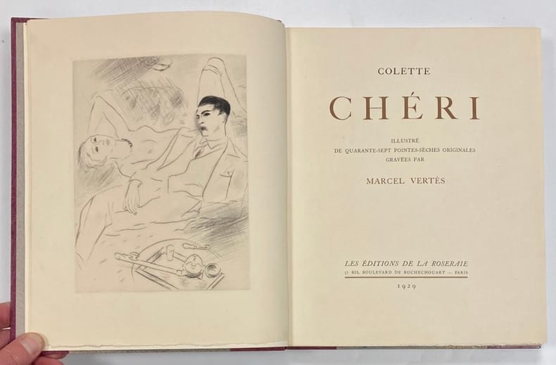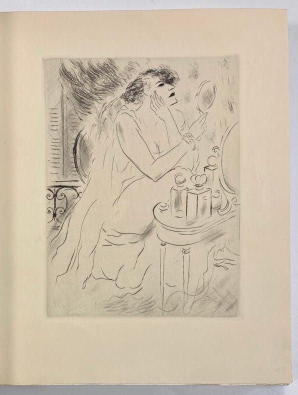 Illustré de 47 pointes-sèches originales de Marcel Vertès dont 1 frontispice, 1 couverture et 12 hors-texte.1 des 100 exemplaires sur vélin de Rives contenant l’état définitif des pointes-sèches.Dos passé.