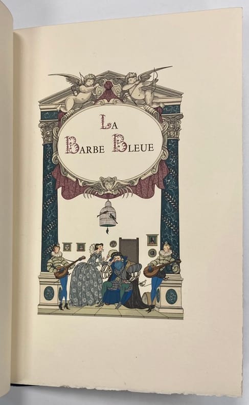 Paris, Boussod-Valadon &Cie, 1886-1887, 2 volumes in-folio de 395x315 mm environ, 34 feuillets et 42 feuillets montés sur onglets, reliures signées Magnin, demi maroquin à coins bleu ardoise (Cendrillon) et rouge cerise (Barbe-bleue), titres dorés rsur dos lisses, ornés de caissons à motifs dorés et mosaïqués, cuir souligné d'un double filet doré, gardes marbrées, têtes dorées. Les deux volumes sont iIllustrés de 74 aquarelles dEd. de Beaumont, admirablement reproduites en fac-similé et imprimées en couleurs par les Editeurs Boussod Valadon & Cie, et na été tiré quà petit nombre sur velin fort. Frottements et petites épidermures sur le cuir, avec manques sur les coins, intérieur parfait état.