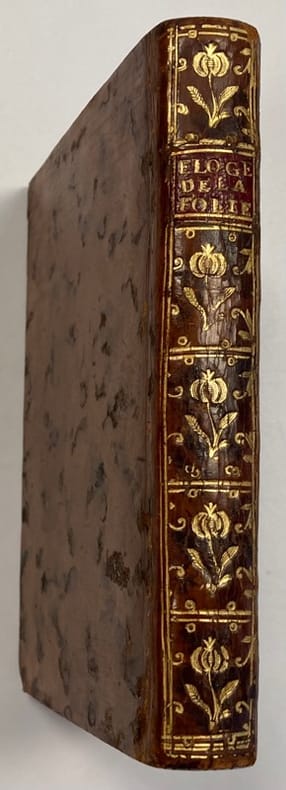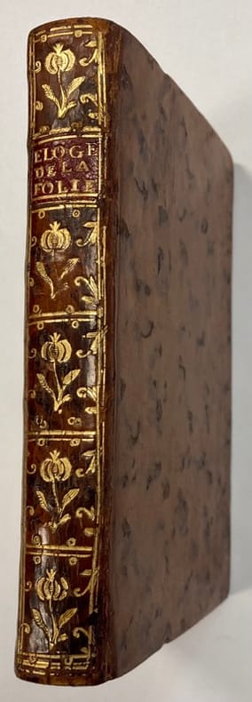 In Basilea (Bâsle), A Spese Della Saviezza, 1761, 1 volume in-12 de 175x105 mm environ, 1f.blanc, 1 frontispice, titre, faux-titre, 391 pages, 11 ff. (1f.table), 1f.blanc, pleine basane marbrée brune, dos à nerfs portant titres dorés sur pièce de titre havane, orné de caissons à fleurons et motifs dorés, gardes de couleurs (restaurées). Traduction de M. Gueudeville.Coiffes arasées, coins et coupes en partie dénudés, notes manuscrites sur les gardes blanches, sinon bon état. Texte bilingue français /italien.