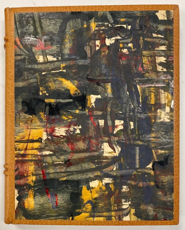 1921 Paris. Crès. 1921. 1 volume in-8, plein maroquin citron, plats recouverts de compositions peintes très abstraites, sur papier, dos à nerfs, tête dorée, couvertures conservées. Reliure signée EV.