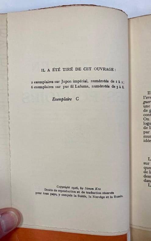 Simon Kra.1926.In-12 demi-relié à coins.235 p.Belle demi-reliure.Couv.et dos conservés.Scotch ancien en haut de la page de faux-titre.