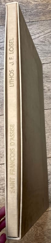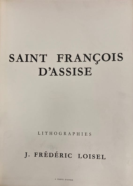 Illustré de 12 lithographies en noir de Frédéric Loisel. Tirage à 75 exemplaires numérotés. 1 des 10 exemplaires numérotés, comprenant en plus 4 planches refusées et 1 grand dessin original monogrammé, représentant le buste de Saint-François. Chaque planche est numérotée et signée au crayon par l'artiste.Préface de Claude Roger-Marx.