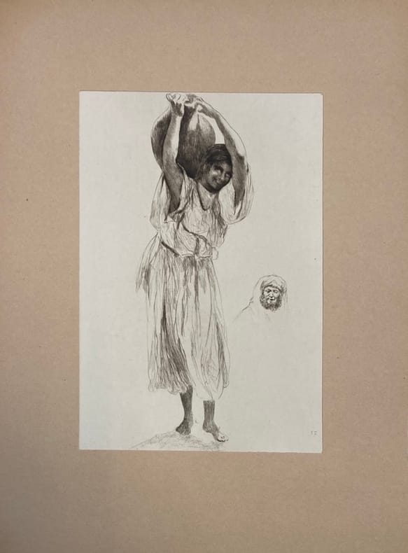 Belle suite de 30 eaux-fortes originales présentées sous passe-partout, accompagnées d'une introduction par Abel Bonnard : scènes de rue, de marchés, portraits pris sur le vif. Tirage annoncé à 1000 exemplaires sur vélin d'Arches, celui-ci n° 366. Pourtant cette suite est rare. Très bel exemplaire habillé d'une riche reliure-portefeuille orientale.- Frottements aux extrémités.