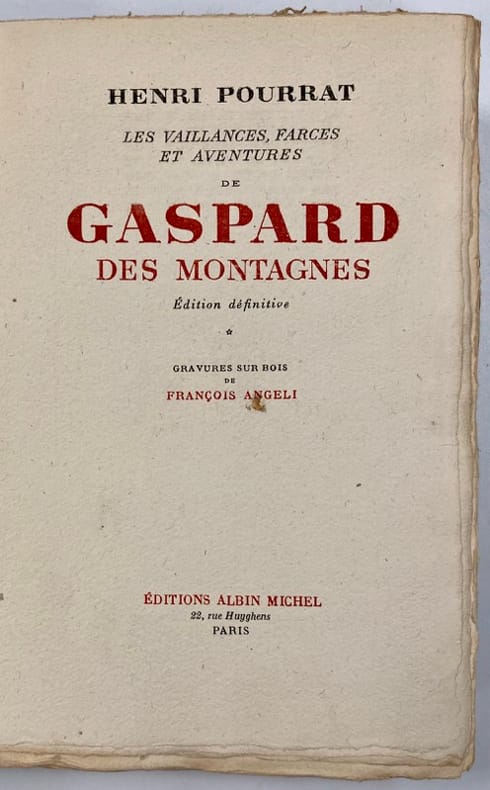 ALBIN MICHEL, 1948, IN 4 , reliure éditeur, 741 p. édition définitive réunissant en un seul volume les quatre tomes de Gaspard des montagnes, gravures sur bois de François Angéli.