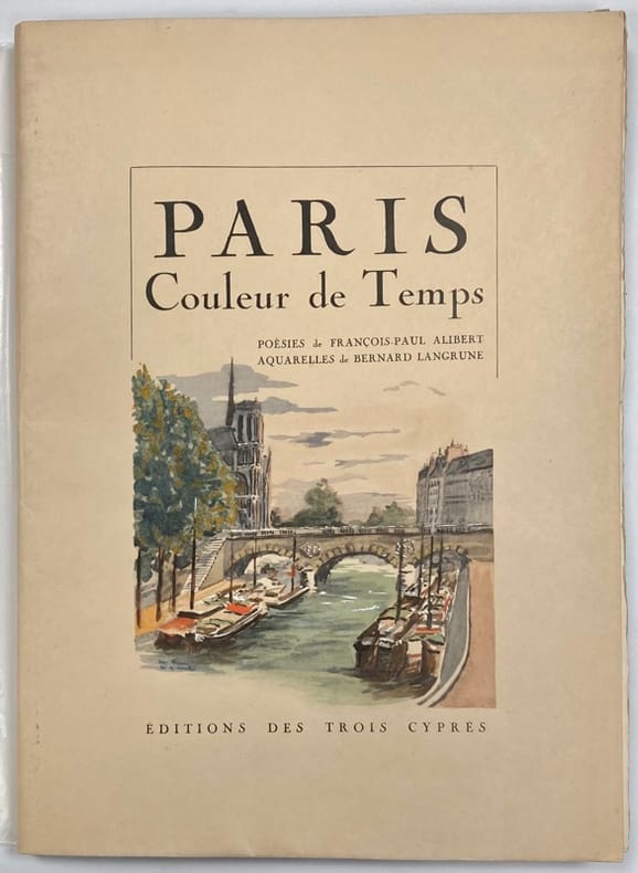 Paris Editions des trois Cyprès 1929 in folio (39x29) 1 volume broché en faux-feuillets sous couverture illustrée rempliée, 56 pages [2]. Ouvrage illustré d'aquarelles in-texte de Bernard Langrune. Poèmes de François-Paul Alibert. Tirage limité à 325 exemplaires numérotés, celui-ci un des 300 exemplaires numérotés sur Vélin à la forme. Bel exemplaire, exempt de rousseurs ( Photographies sur demande / We can send pictures of this book on simple request )