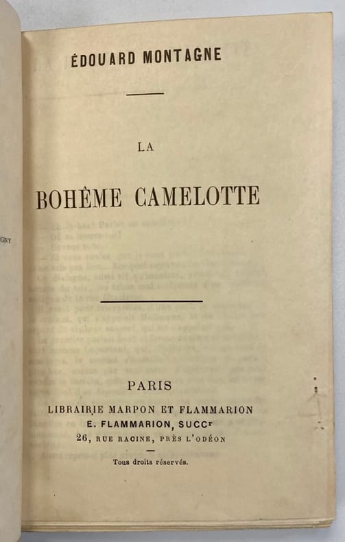 Édition originale publiée dans la collection populaire des « Auteurs célèbres » de Flammarion. Officier de l'instruction publique, économe puis directeur d'hôpital, Édouard Montagne menait aussi une carrière d'homme de lettres, composant des romans et de nombreux vaudevilles joués sur les grandes scènes parisiennes. Il fut le directeur de la Société des Gens de lettres de 1886 à sa mort en 1899. Bel exemplaire, peut-être le seul sur papier Japon fin, très bien relié, sans doute l’exemplaire de l'auteur.