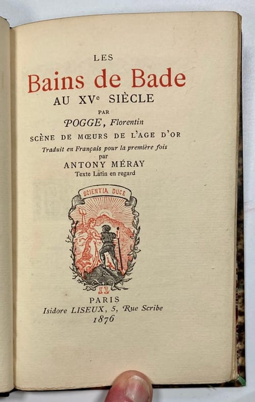 Etat très satisfaisant (reliure lég. passée et lég. frottée, très bon état par ailleurs). Etonnante et pittoresque description des Bains de Bade vers 1415, par Le Pogge (1380-1459).