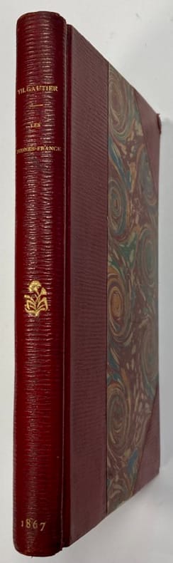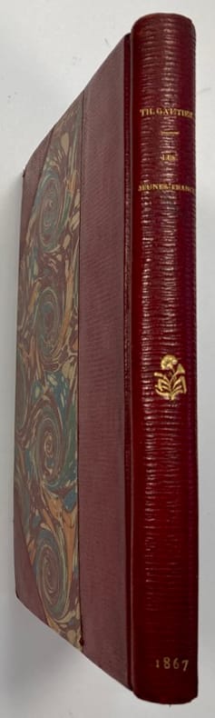 Les jeunes-France romans goguenards suivis de contes humoristiques. In 12 demi-toile violine à la bradel, pièce de titre cuir. Faux-titre, titre, XVIII ; 369 pages, 1 page de table, non rogné. Paris CHARPENTIER & Cie 1875. Quelques pâles rousseurs éparses. Sinon bon exemplaire.
