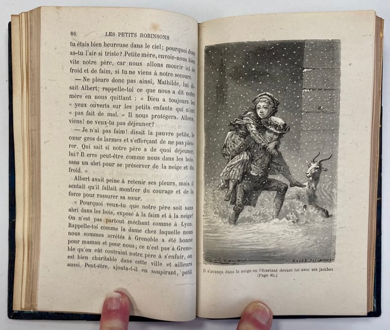 1 volume in 12 . broché. bois gravés de E. Bayard et de H. Clerget . chez Dardelet à Grenoble. (1926) . couverture couleurs de Rob D'Ac. faux titre+ titre + 2 ff introduction + 269 pp + table. Edition très illustrée in et hors texte. en partie non coupé.Ce roman a été publié pour la première fois en 1860 chez Ferary ed. avec 4 gravures ; puis chez Hachette, abondamment illustré, dans sa collection la bibliothèque rose. C'est cette dernière édition, qui est reprise ici par Dardelet en 1926, avec les mêmes gravures qui l' illustraient. Exemplaire bien propre.